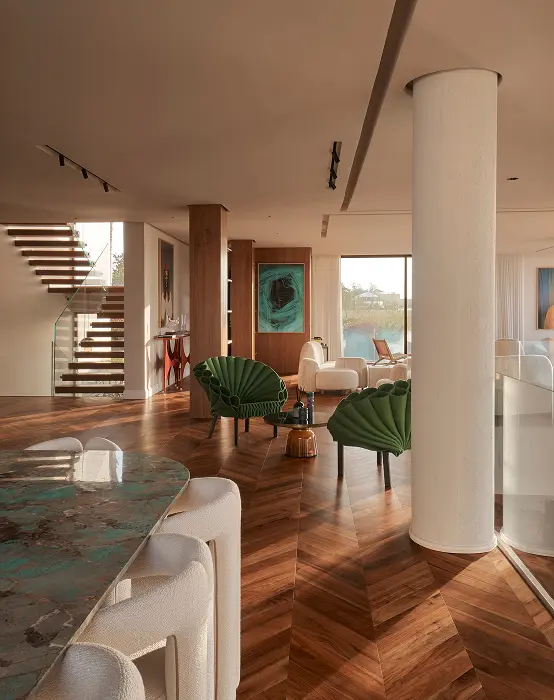 Sur les hauteurs d’une vallée verdoyante, la Villa AA incarne une approche contemporaine où architecture et paysage ne font qu’un. Conçue par Yamé Architecture Studio, la villa se distingue par ses larges ouvertures sur deux niveaux, effaçant la frontière entre intérieur et extérieur. Cette rénovation a révélé un espace lumineux et apaisant, où chaque détail – du marbre aux teintes naturelles jusqu’au mobilier signé – traduit une élégance sobre et maîtrisée. Véritable manifeste de la vision de l’agence, la Villa AA célèbre la fluidité, la lumière et le dialogue constant entre nature et architecture.