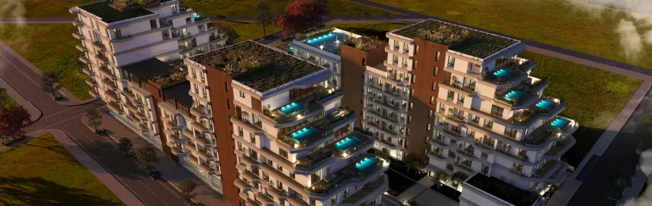 L’ensemble est pensé comme une architecture de transition, reliant la ville moyenne et les émergences d’Anfa, tout en intégrant de vastes terrasses-jardins et des espaces communs en toiture – rooftop et zone fitness – ouverts sur le paysage. Son écriture sobre, la fragmentation des masses bâties et l’harmonie entre espaces publics et privés traduisent une vision contemporaine de l’habitat : élégante, fluide et profondément urbaine.